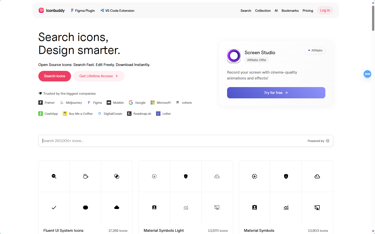 Iconbuddy是一个专注于SVG图标的开源资源搜索引擎和设计工具,旨在帮助用户快速搜索、下载、定制和编辑超过25万个免费开源的SVG图标。